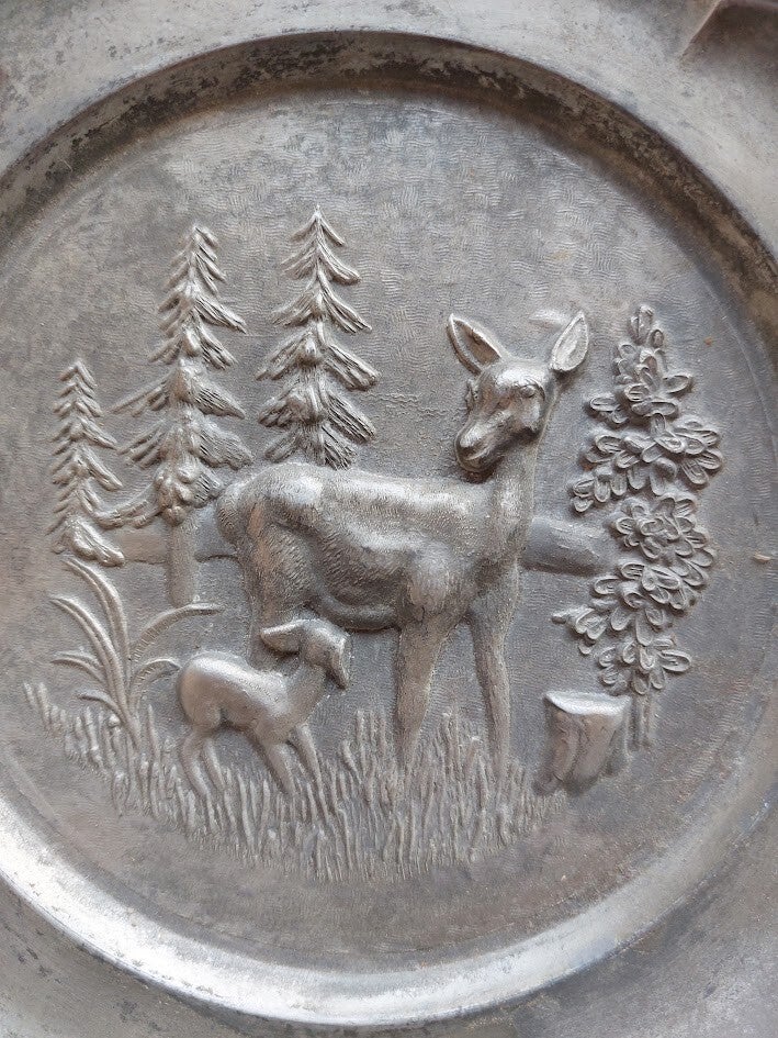 ♠ Tinnen muurbord ree met kalf