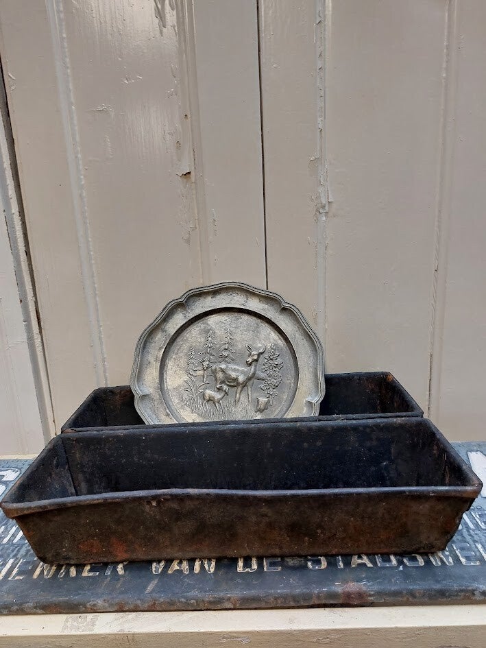 Oud bakblik bestaande uit 2 vakken.
