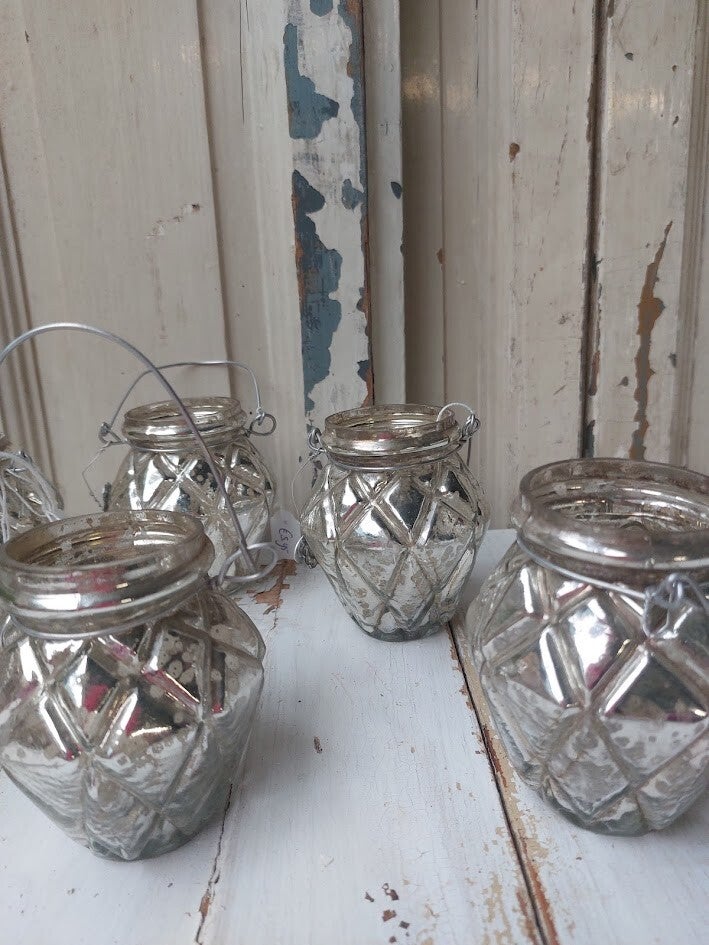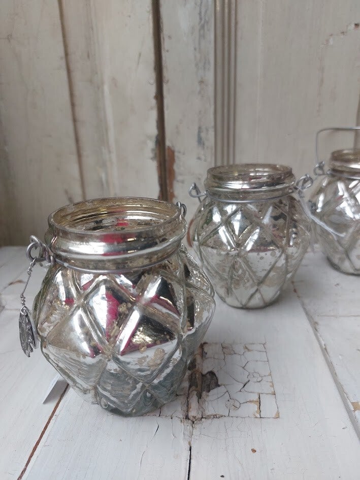 ♥ Zilverkleurig glazen theelichthouder Braxton