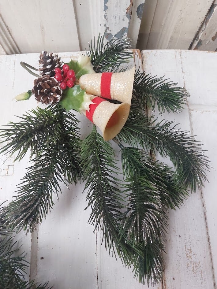 Dit zijn kunstkersthangers of 'swags' in een rustieke, vintage-geïnspireerde stijl. Ze zijn ontworpen om op te hangen, bijvoorbeeld aan een deurknop, muur of schoorsteenmantel, en bootsen traditionele kerstgroendecoraties na.