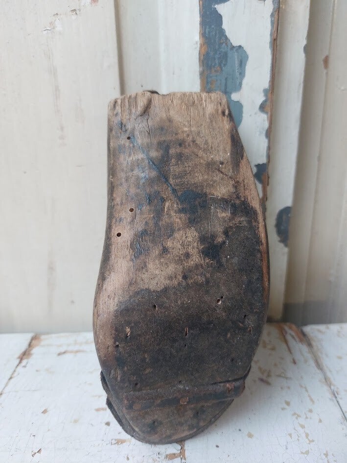 Dit is een vintage houten schoenleest of leest, een gereedschap dat traditioneel werd gebruikt door schoenmakers om schoenen te maken of te repareren