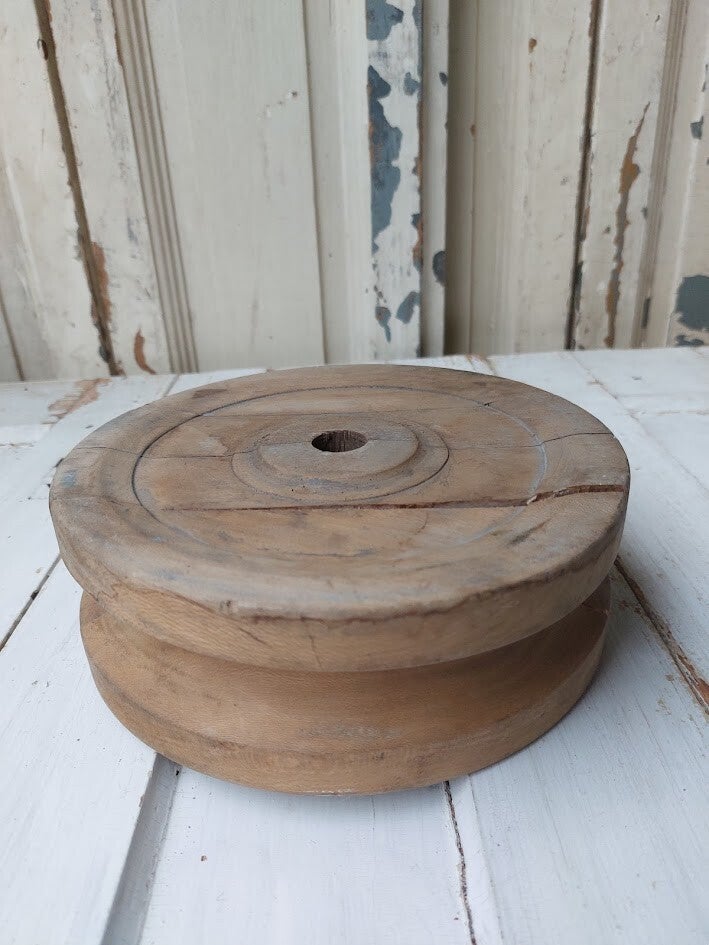 Oud houten spoel, leuk als decoratie object met een kaars.