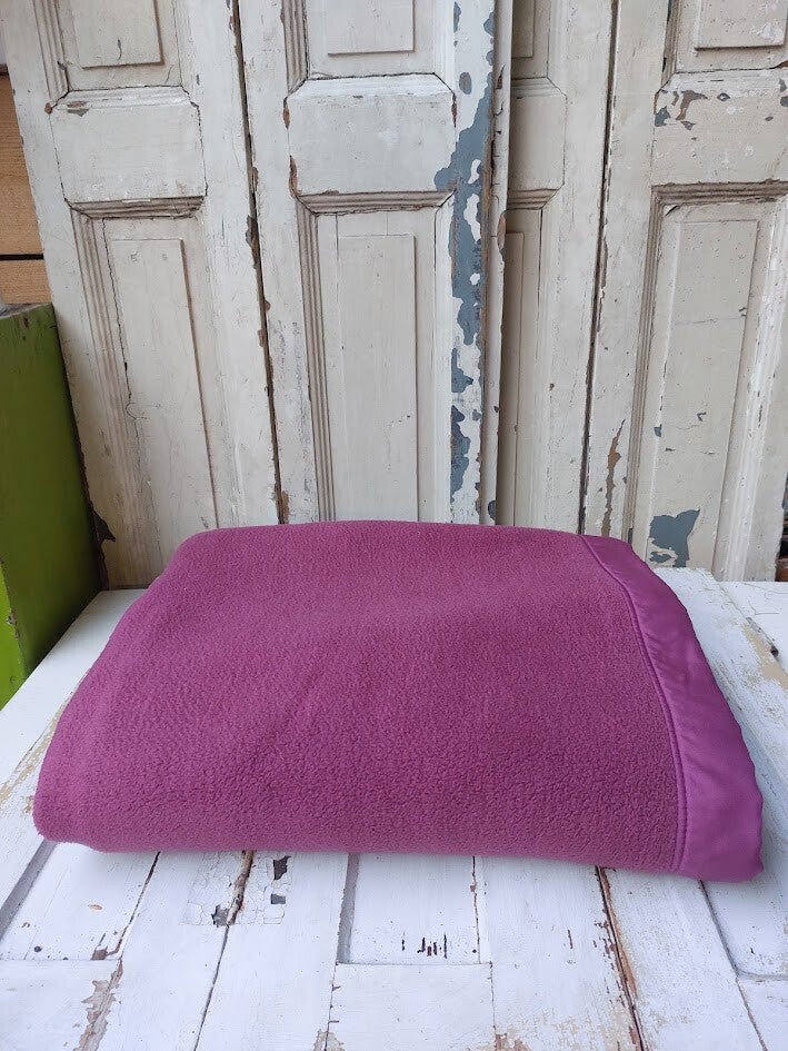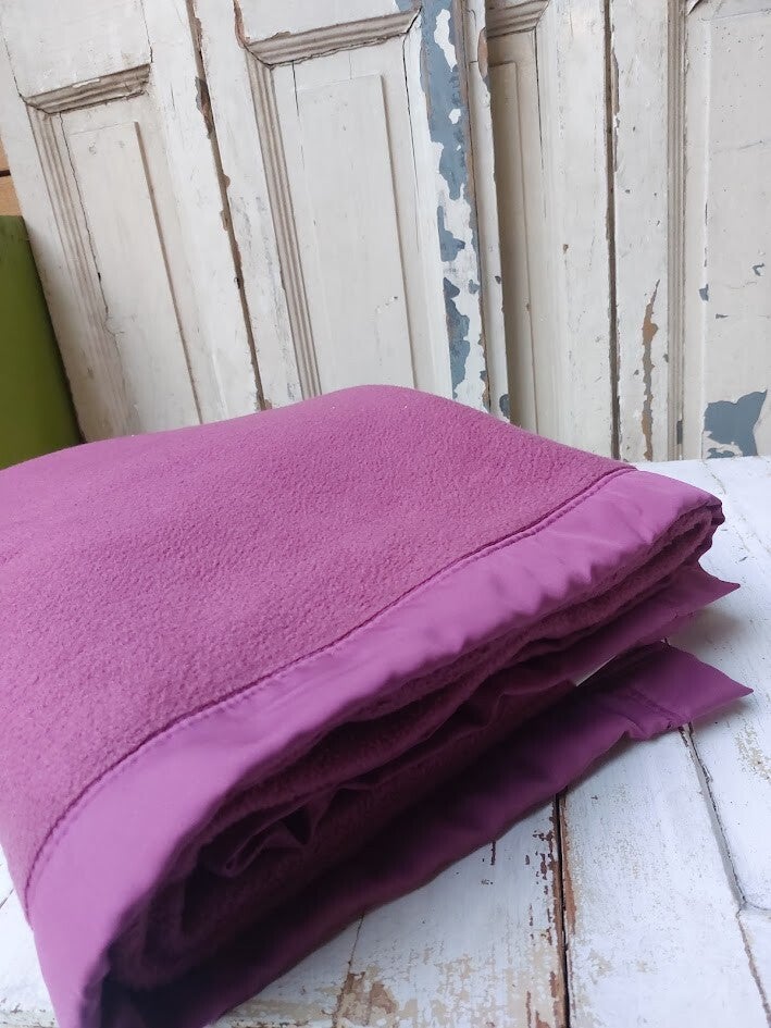 Deze paarse deken of omslagdoek is gemaakt van 60% katoen en 40% acryl en is geproduceerd in Duitsland.