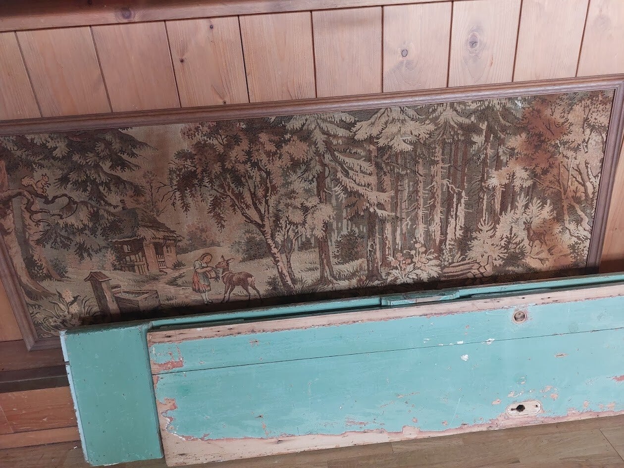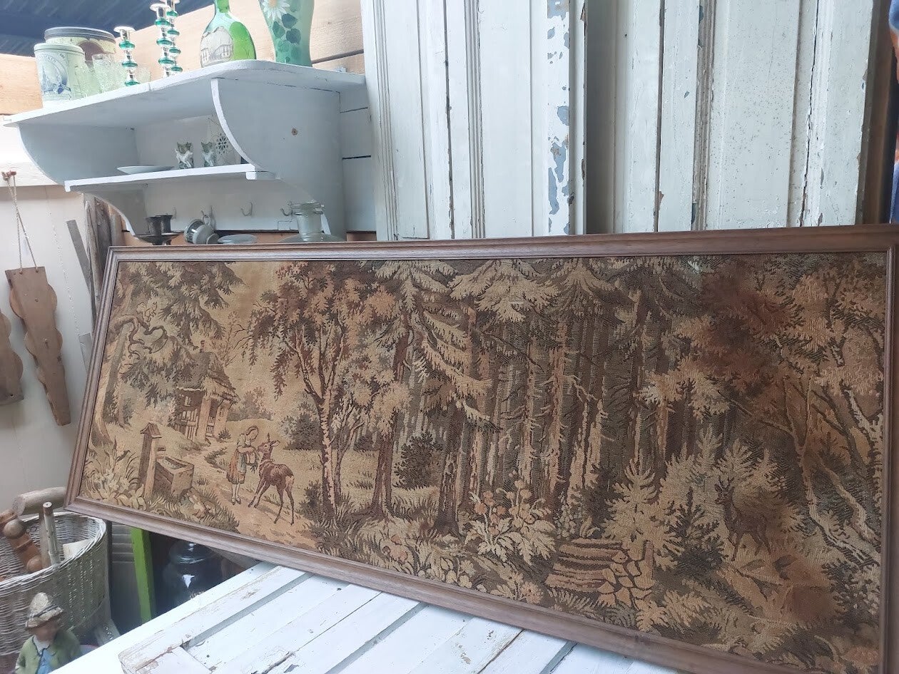 ♠ Vintage wandtapijt Gobelin in houten lijst.