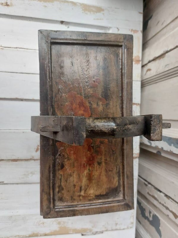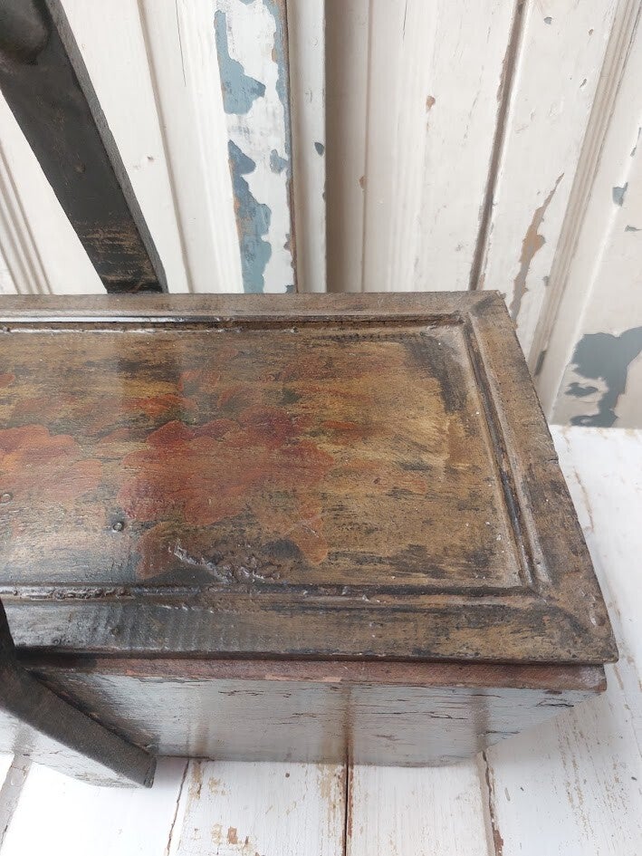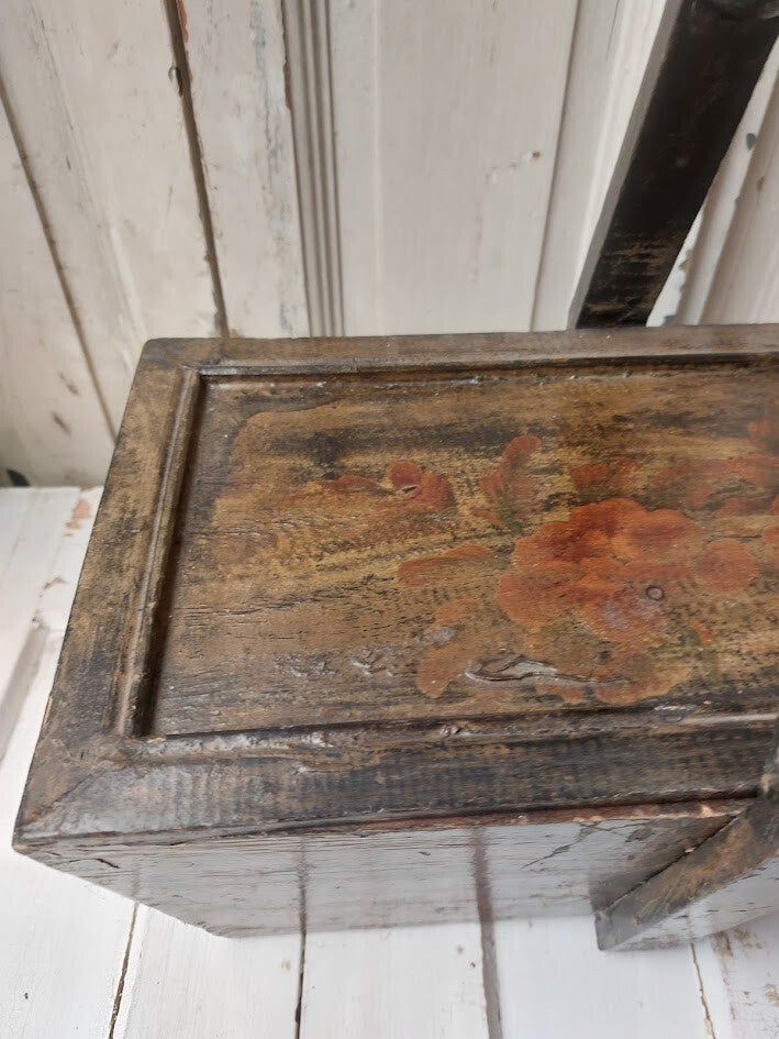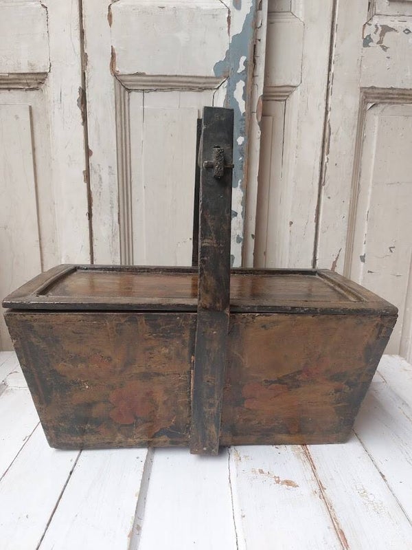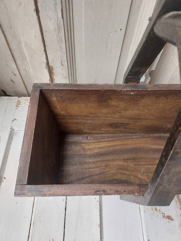 Folks art Antieke houten bak met handvat.