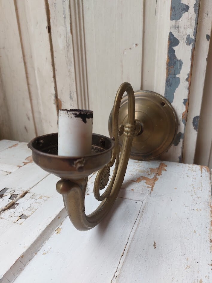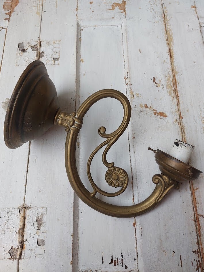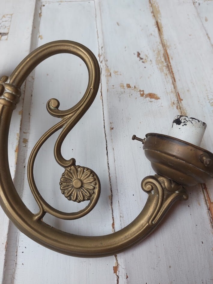 Die typerend is voor de Art Nouveau-stijl vanwege de sierlijke, vloeiende lijnen. Materiaal: Messing of geel koper. Stijl: Art Nouveau, vaak gekenmerkt door bloemmotieven en gekrulde armen.