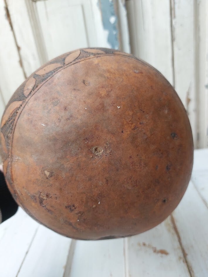 Een functioneel en decoratief kunstwerk gemaakt van de gedroogde schaal van de kalebasvrucht.